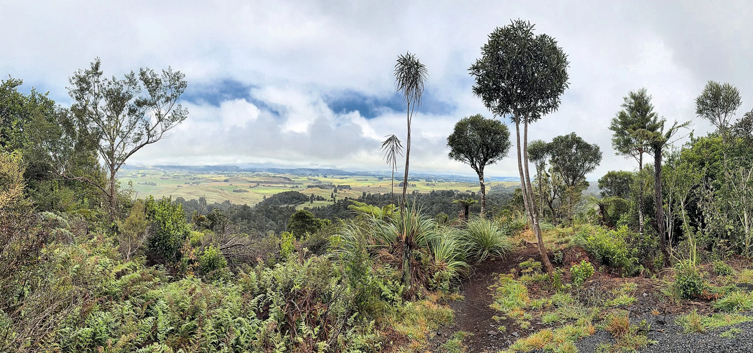 The remainder of the track is through bush, sometimes on old cobblestones, and then downhill with wide views of the surrounding farmland.