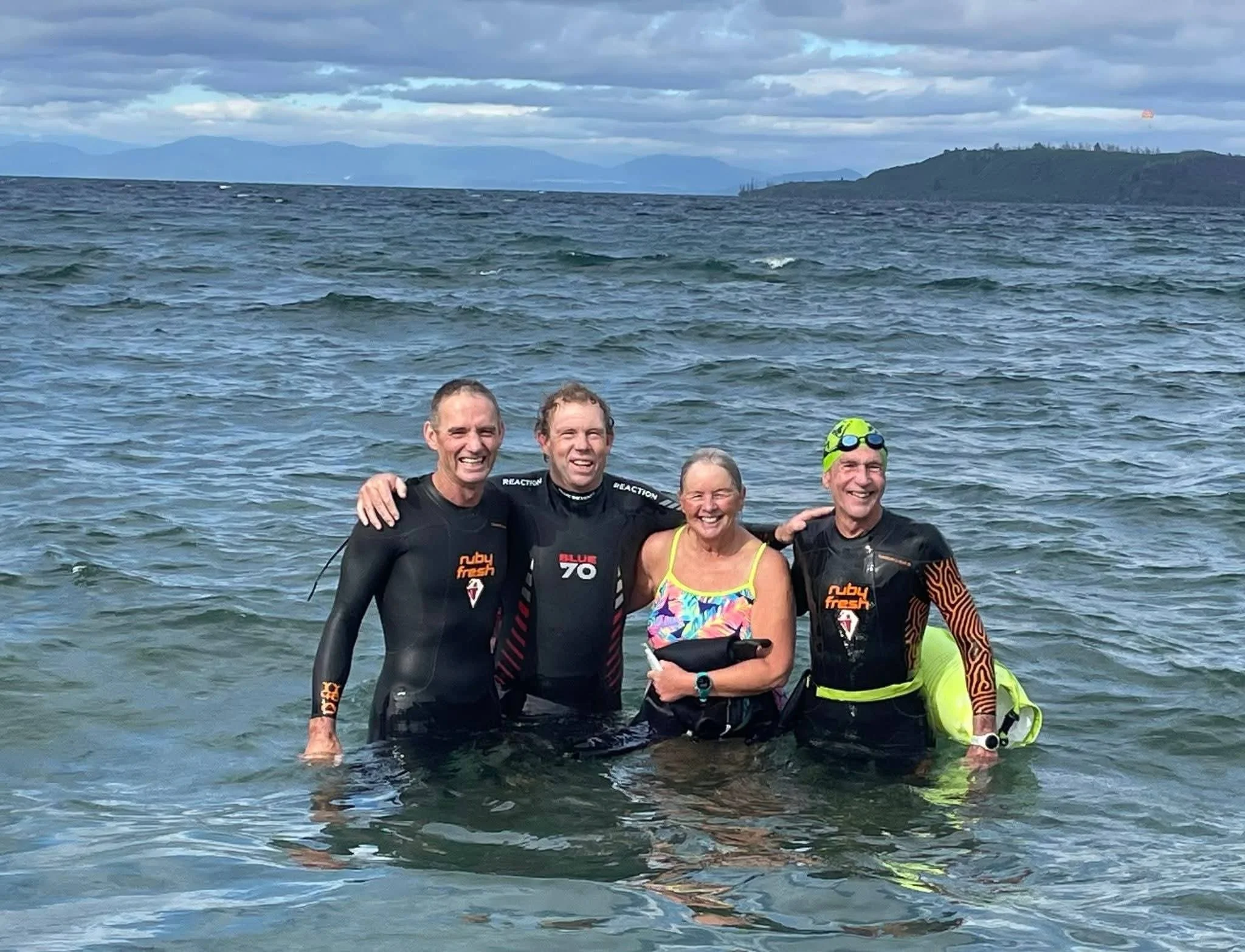 He says a good support group of fellow Taupō Masters Swimmers members, friends, family and water taxis were key, as they needed to be picked up and dropped off at the right place each swim.