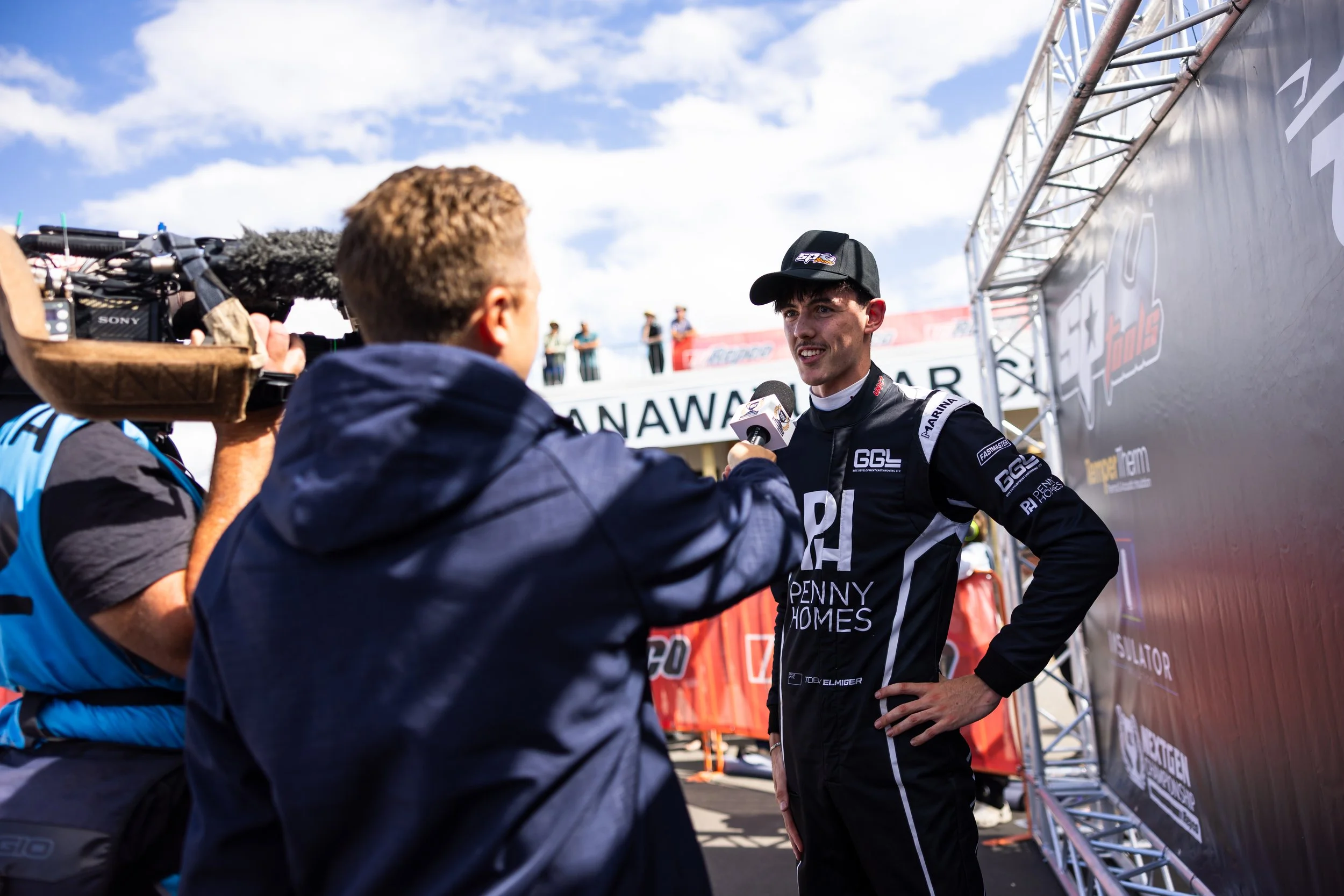 Toby Elmiger talks to media after racing at Manfeild this year. Photo: Tayler Burke