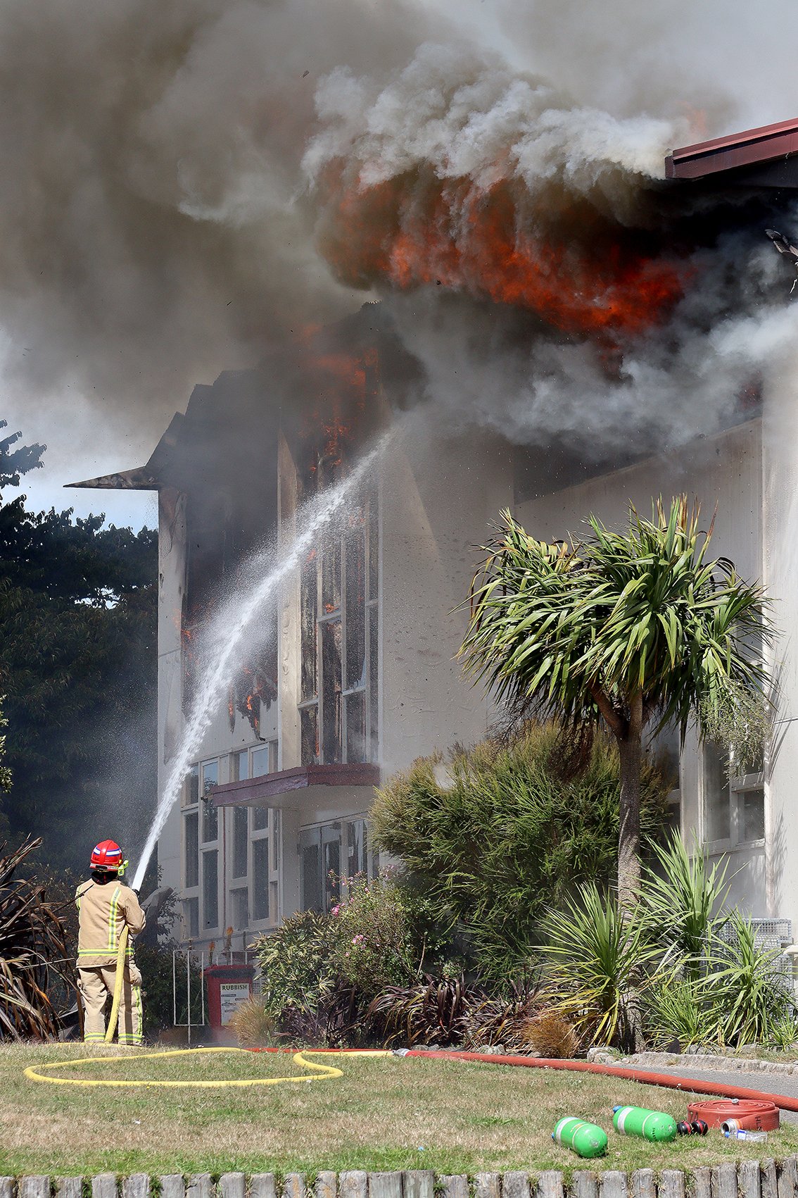 On Sunday, as the block became fully engulfed, Police closed surrounding roads for about four hours while Fire and Emergency New Zealand worked to contain the blaze.